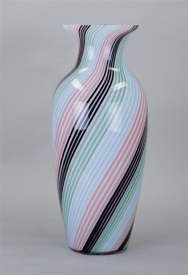 A large glass Murano vase, converted into a lamp base.H. 45 cm.