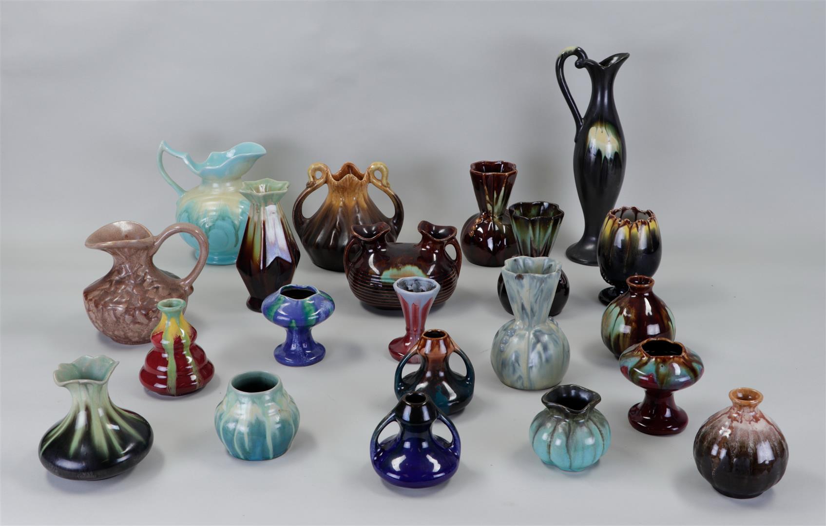 A collection of glazed Flemish earthenware vases..H. 5 - 15 cm.