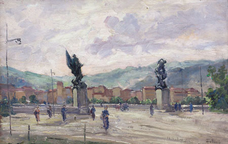 olio su tavola con preparazione iniziale di "Giuseppe Ferraris" cm. 27x43, firma in basso a destra "Follini".