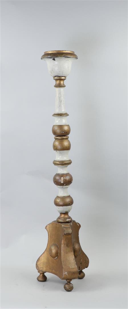 A softwood altar candlestick with remains of polychrome, 18th/19th century....