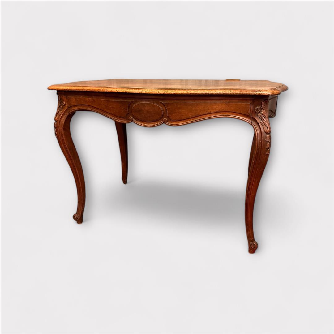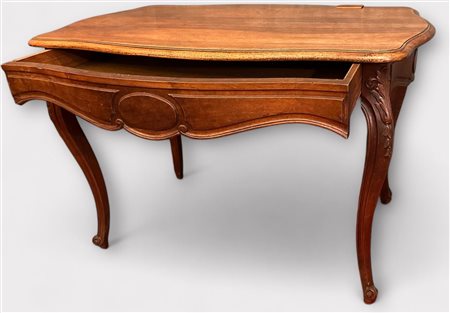 A walnut, Louis XV style, scalloped desk top with one drawer, 19th century. 73 x 110 x 67 cm.