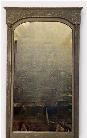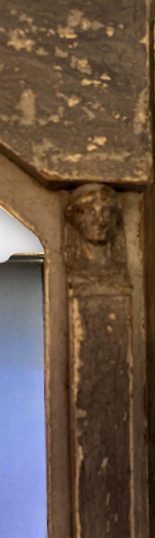 A grey-overpainted, Empire mantel mirror, with charyatids on either side....