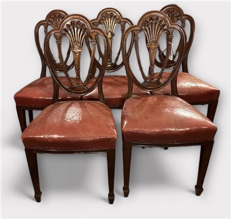 A set of (5) Hepplewhite dining chairs, upholstered in red leather, England,...