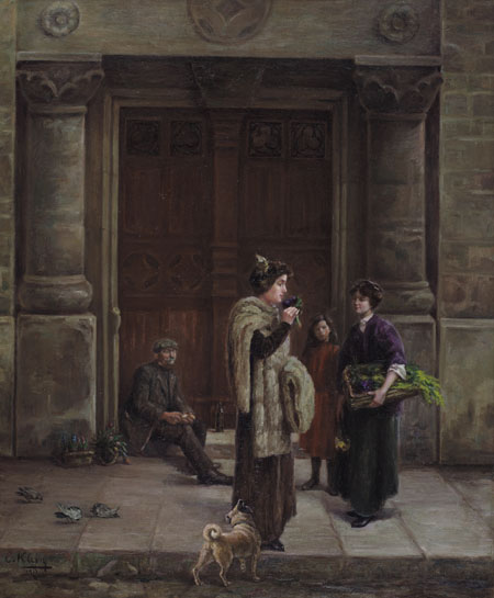 olio su tela cm. 73,5x60,5; firma e anno in basso a sinistra, timbro di Ph. Lecluse - Roue de Clichy 58 Paris e cartigli della 61° Exposition di Versailles del 1914 con recapito dell'artista "C. Klein - 46 Roue de Dunkerque Paris" al retro.