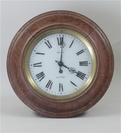 A round antique so-called school clock, addressed on the dial 'Anvers'.