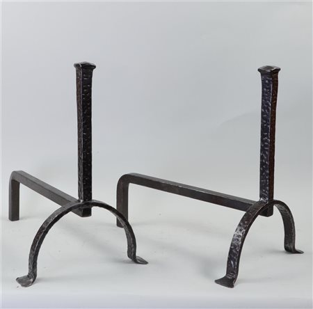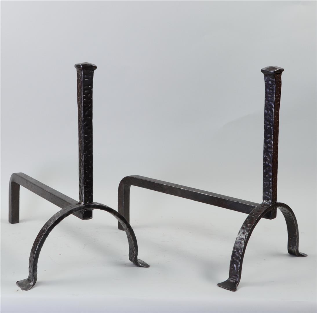 A pair of antique wrought iron fire dogs. 38 x 39 cm.