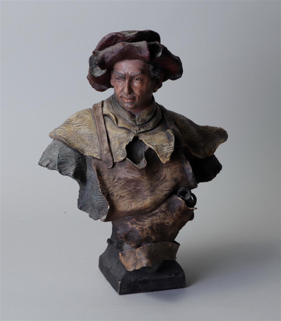 Friedrich Goldscheider (1845 - 1897), A terracotta bust of a man in 16th century costume, signed on the reverse.