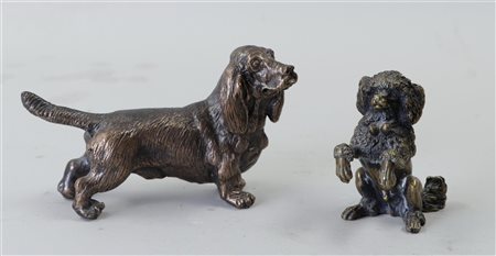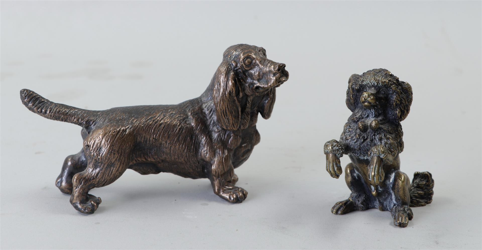 A lot of two bronze sculptures consisting of a basset hound and a poodle. H....