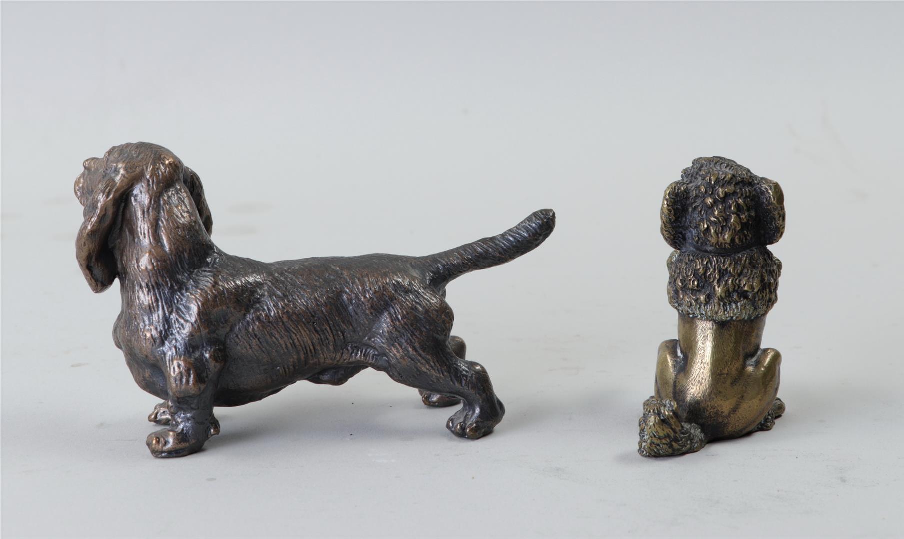 A lot of two bronze sculptures consisting of a basset hound and a poodle.