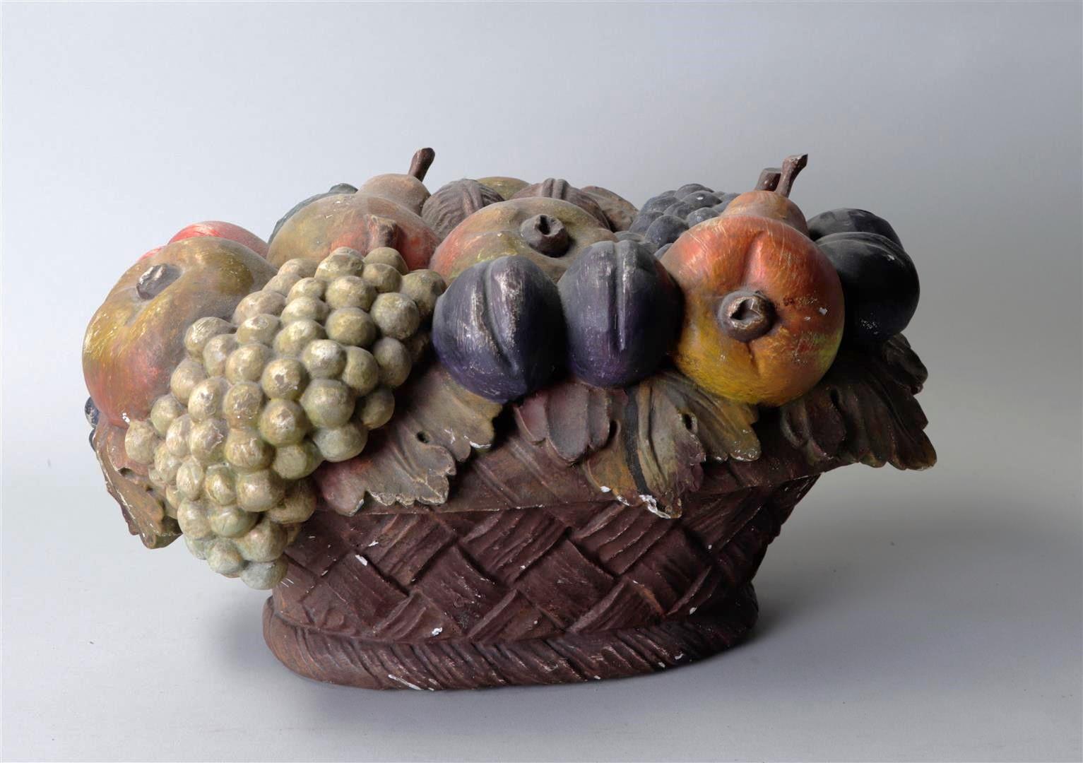 A plaster polychrome table piece in the shape of a fruit basket. 20 x 30 cm.