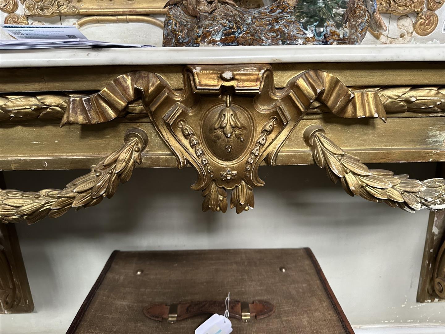 A Louis XV carved and gilded gesso wall console with white marble top, 18th...
