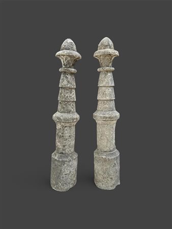 A lot of (2) natural stone pinnacles, originating from a Belgian church. Height: 47 cm.