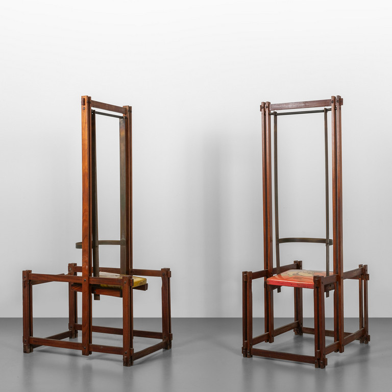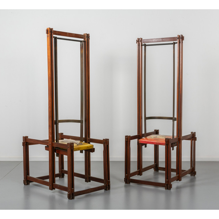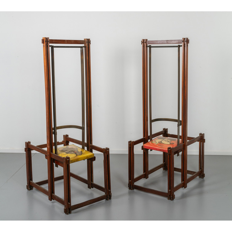 sedute imbottite rivestite in tessuto panno e pvc trasparente.