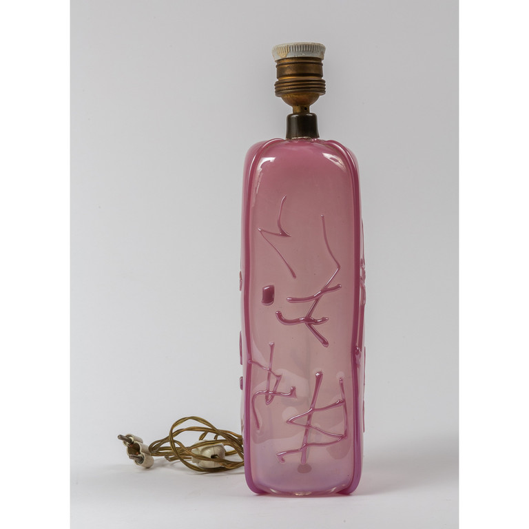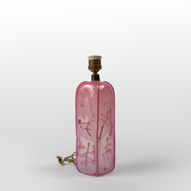 Vetro opalino rosa con decoro di applicazioni astratte.