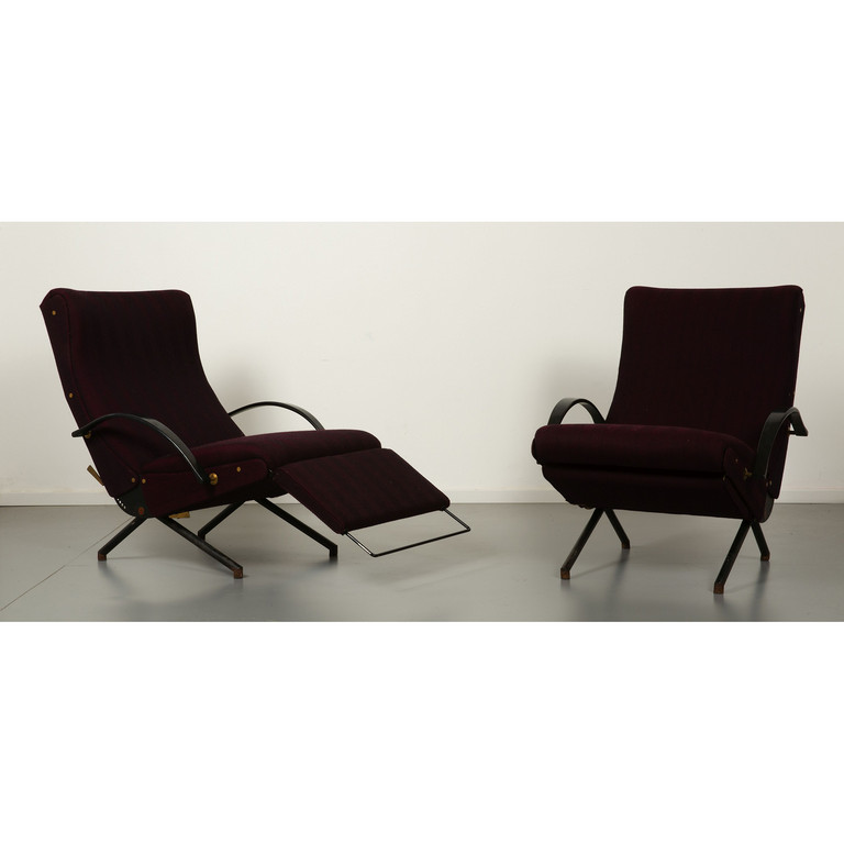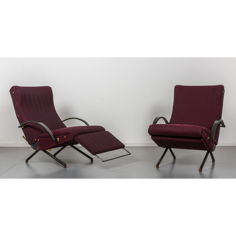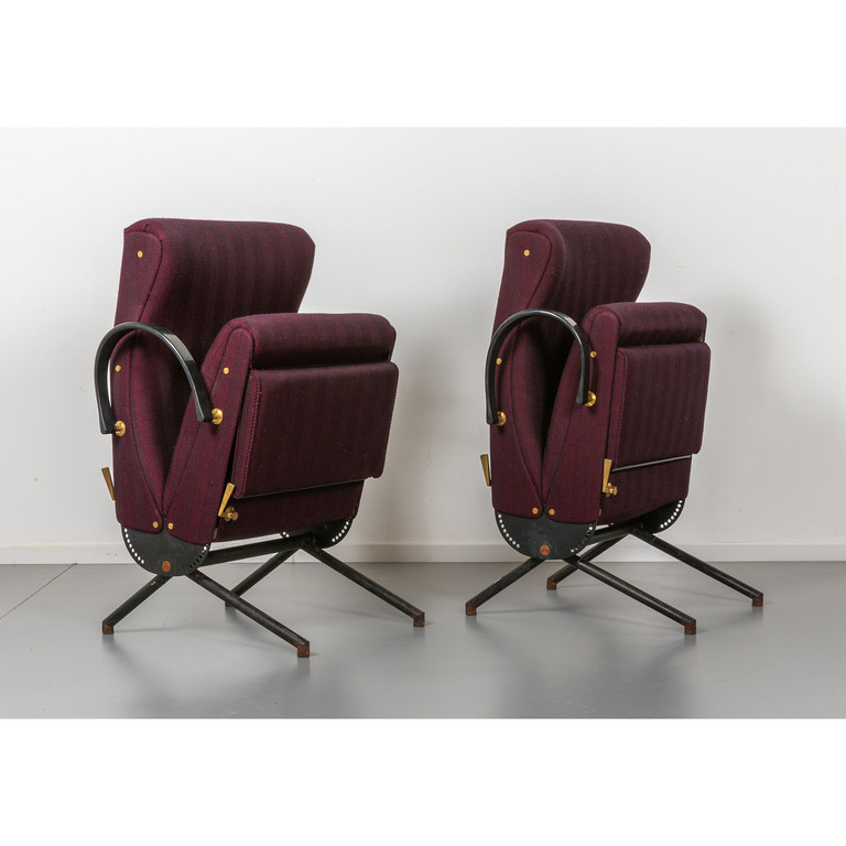 Adjustable structure in lacquered steel brass fabric upholstery.