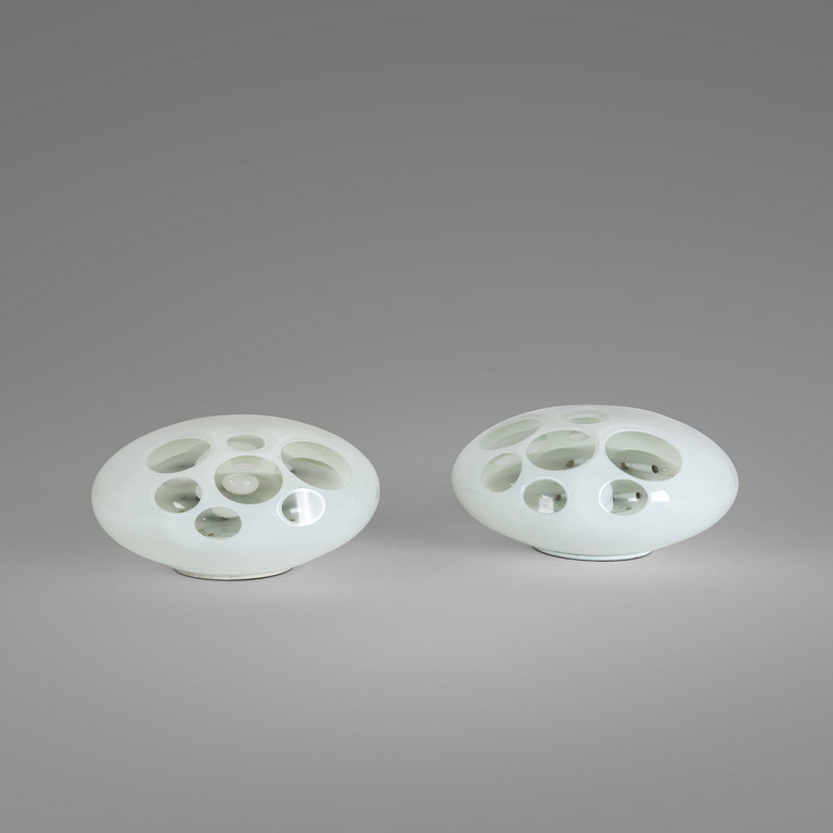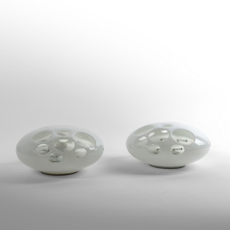 Cristallo incamiciato in vetro lattimo con medaglioni molati.