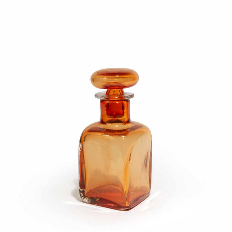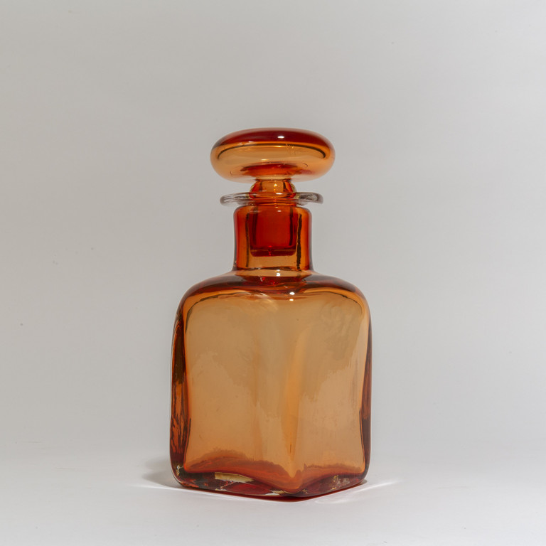 Una bottiglia a base quadrata in vetro trasparente corniola mod. 3541.