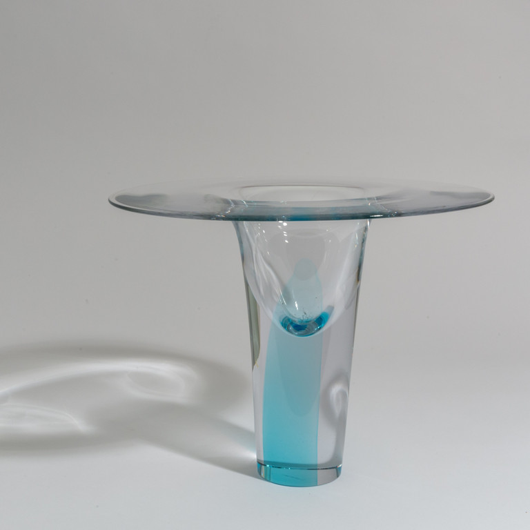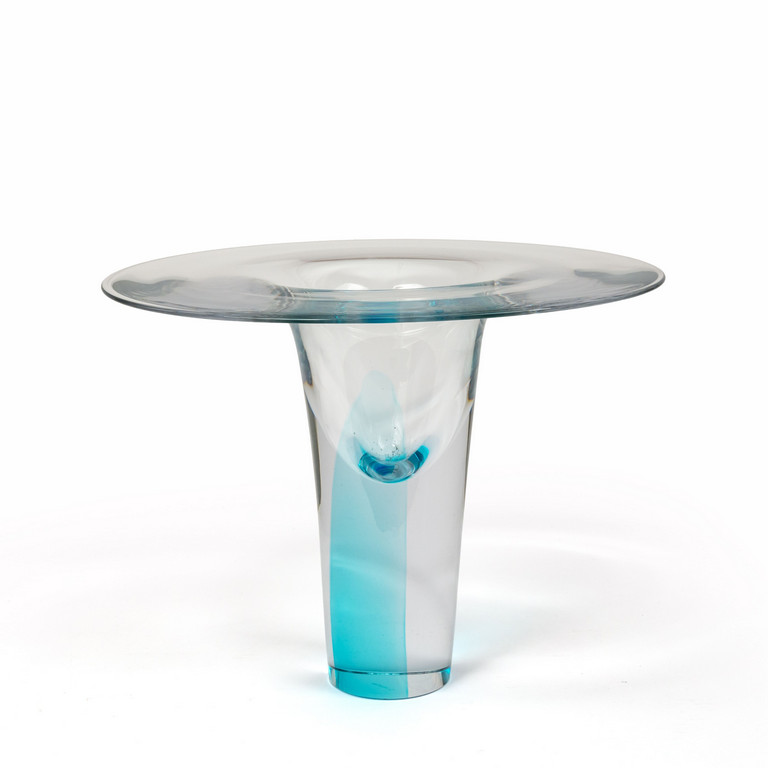 Un vaso in cristallo con decoro di fascia trasparente acquamare.