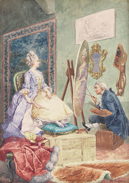 ROBERTI ALBERT PIERRE 1811 - 1864Il pittore di cortetempera e acquerello su...