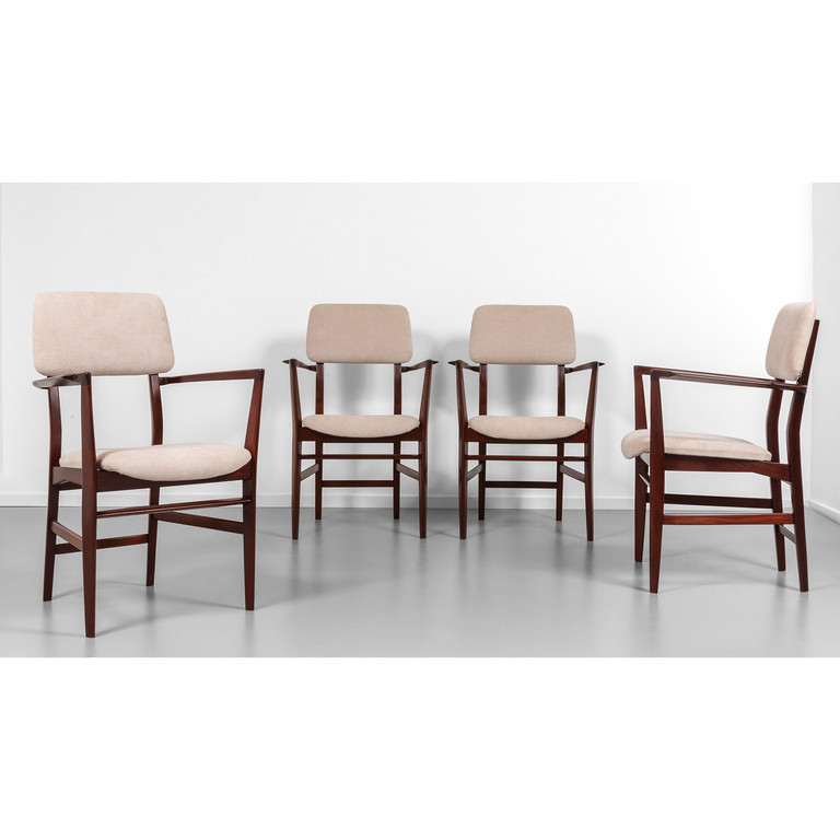 Legno di palissandro tinto all'anilina sedili e schienali rivestiti in tessuto.