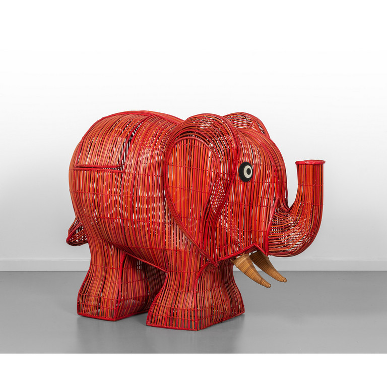 Giunco tinto all'anilina canna d'India legno laccato.