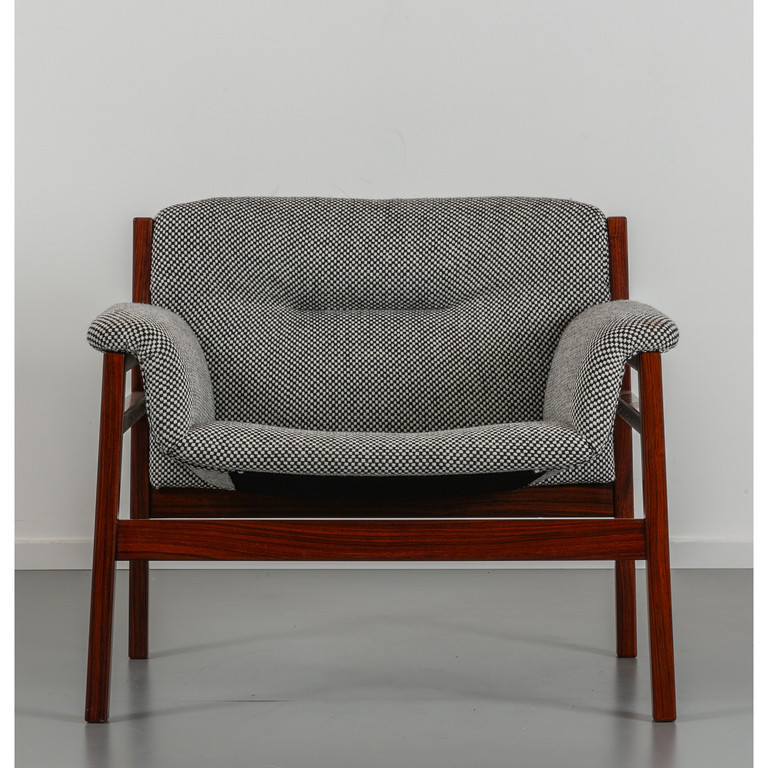 Legno di palissandro imbottiture rivestita in tessuto.