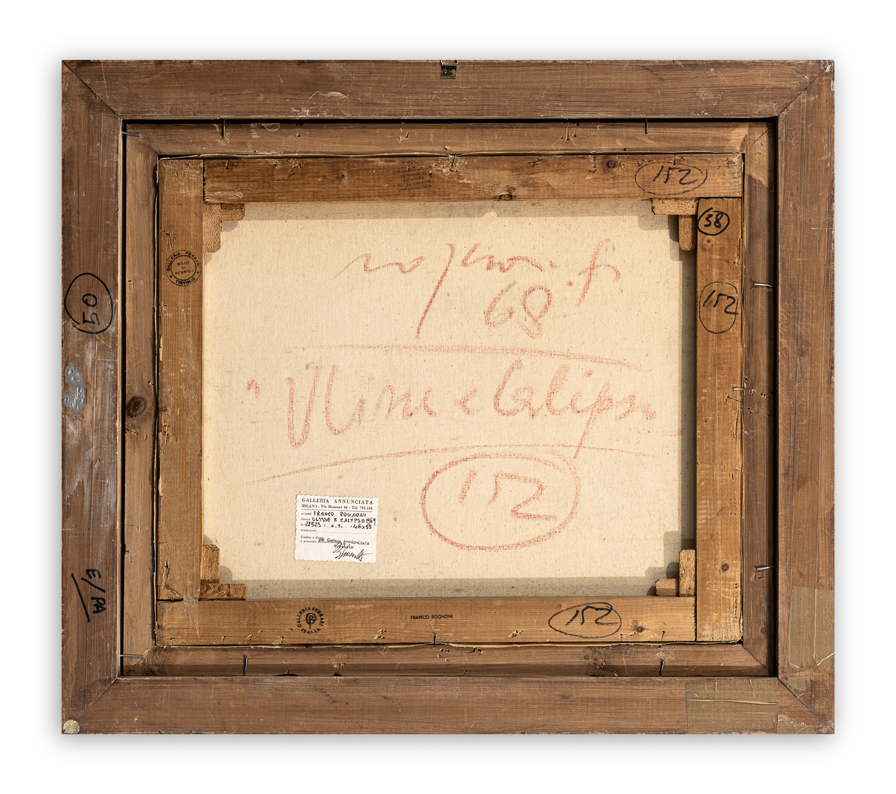 Etichetta della Galleria Annunciata (MI), con caratteristiche tecniche dell'opera, al retro