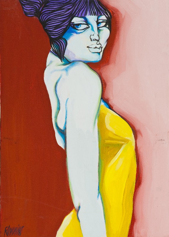 Natale Filannino (Reggio Calabria 1926) FIGURA DI DONNA Olio su tela, cm. 70x50 La tela presenta lievi imperfezioni. Firmato in basso a sinistra.