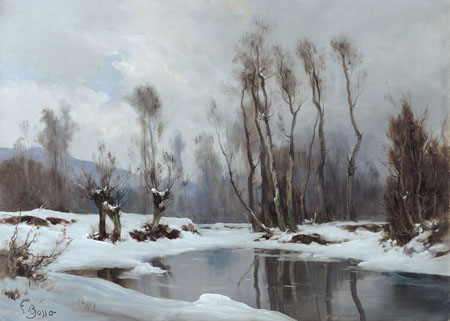 BOSSO FRANCESCO Vercelli 1864 - Torino 1933Paesaggio innevatoolio su cartone...