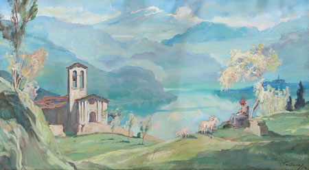 tempera su cartoncino cm. 60x110, firma e anno in basso a destra, firma, titolo e anno al retro.