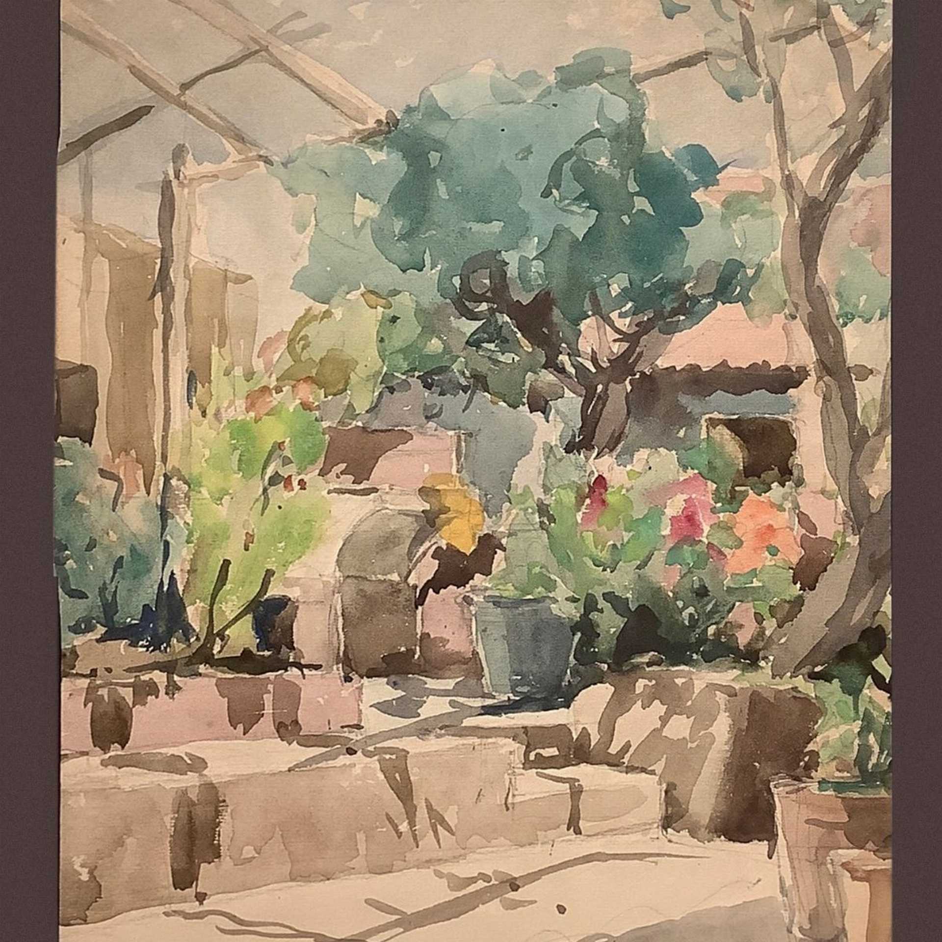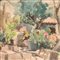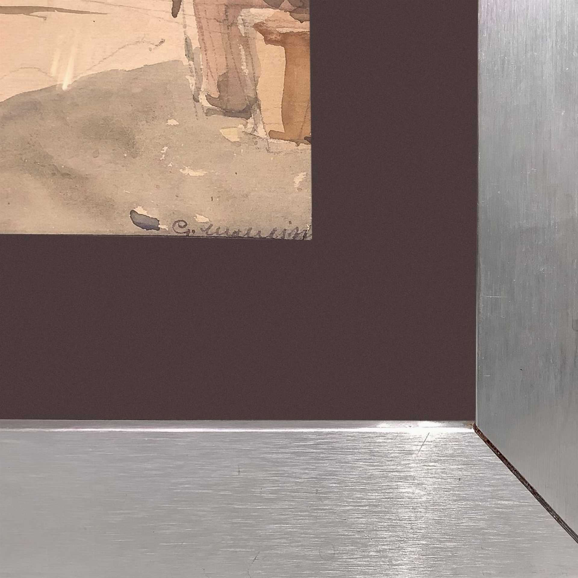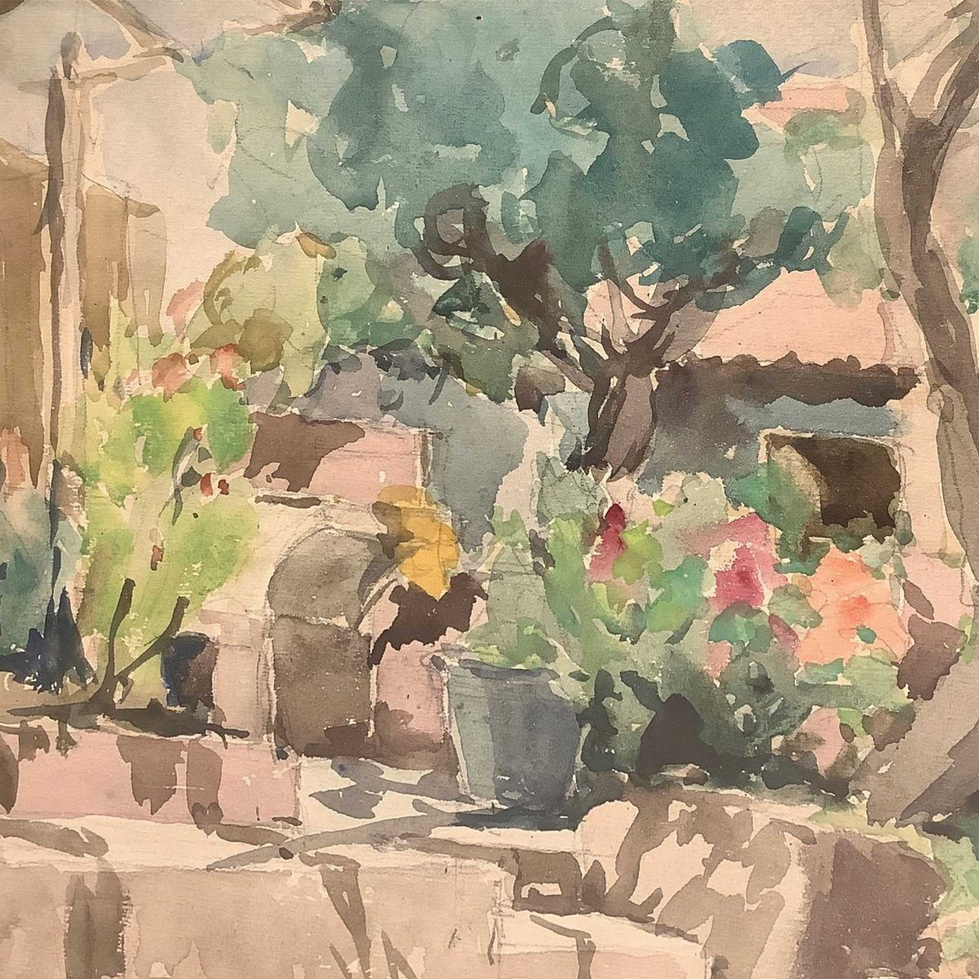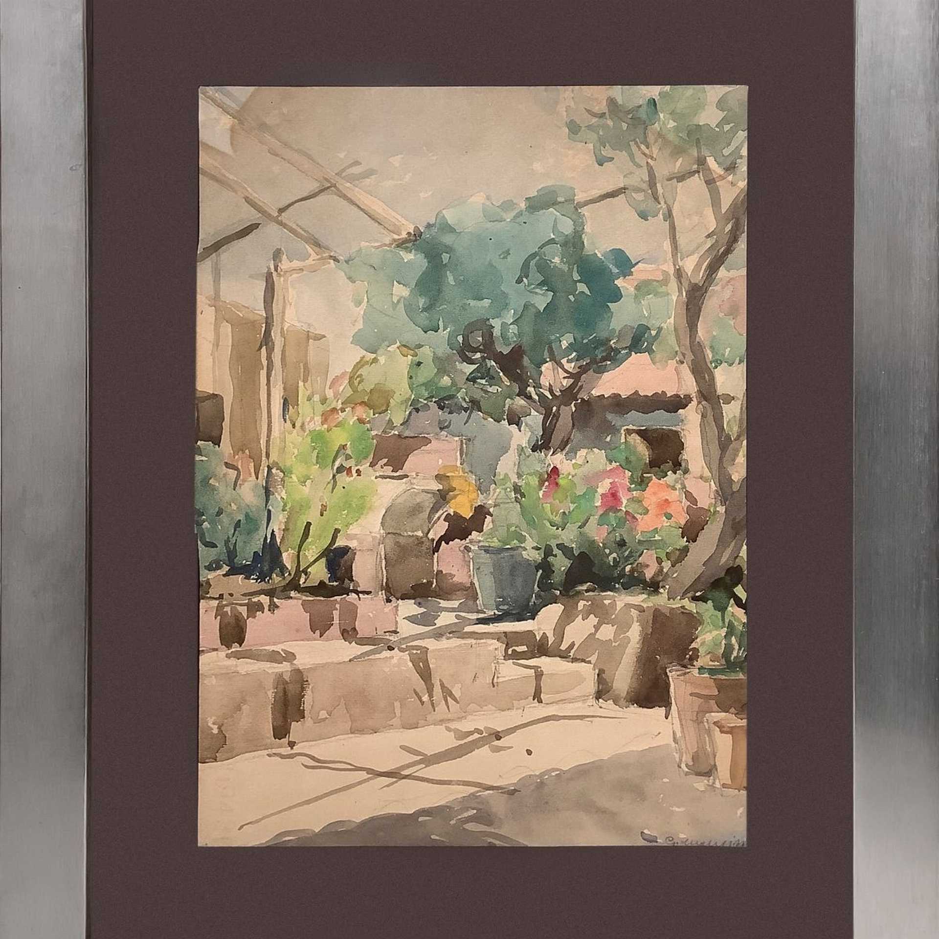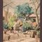 Terrazzo con vasi con fiori cm 32x23 Acquarello su carta Firmato G. Mancini.