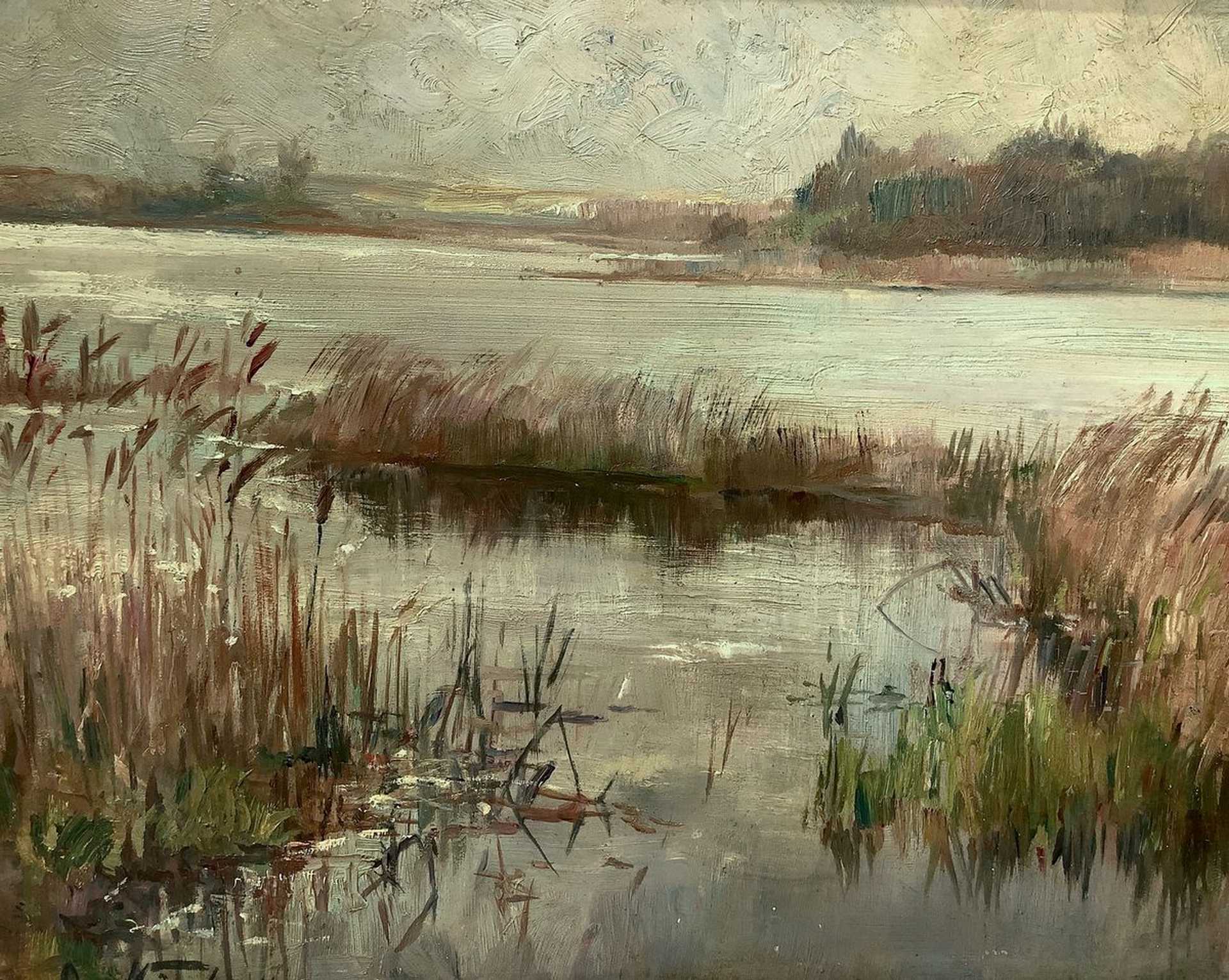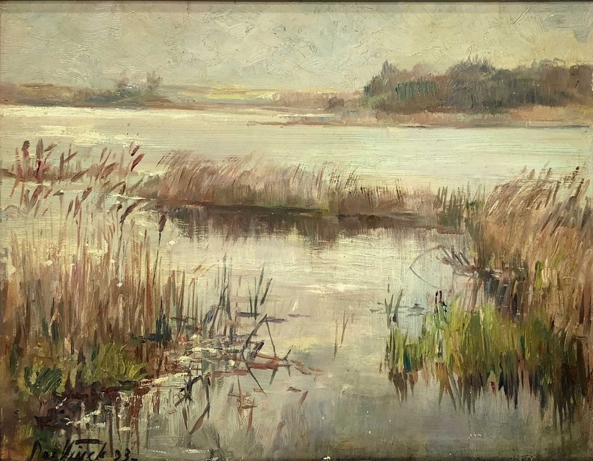 Jozef Vinck (Antwerp 1900-1979) - Paesaggio lacustre, 1933 Cm 32x40, in cornice cm 43,5x50 Olio su tavola Firma in basso a sinistra , datato ‘33.