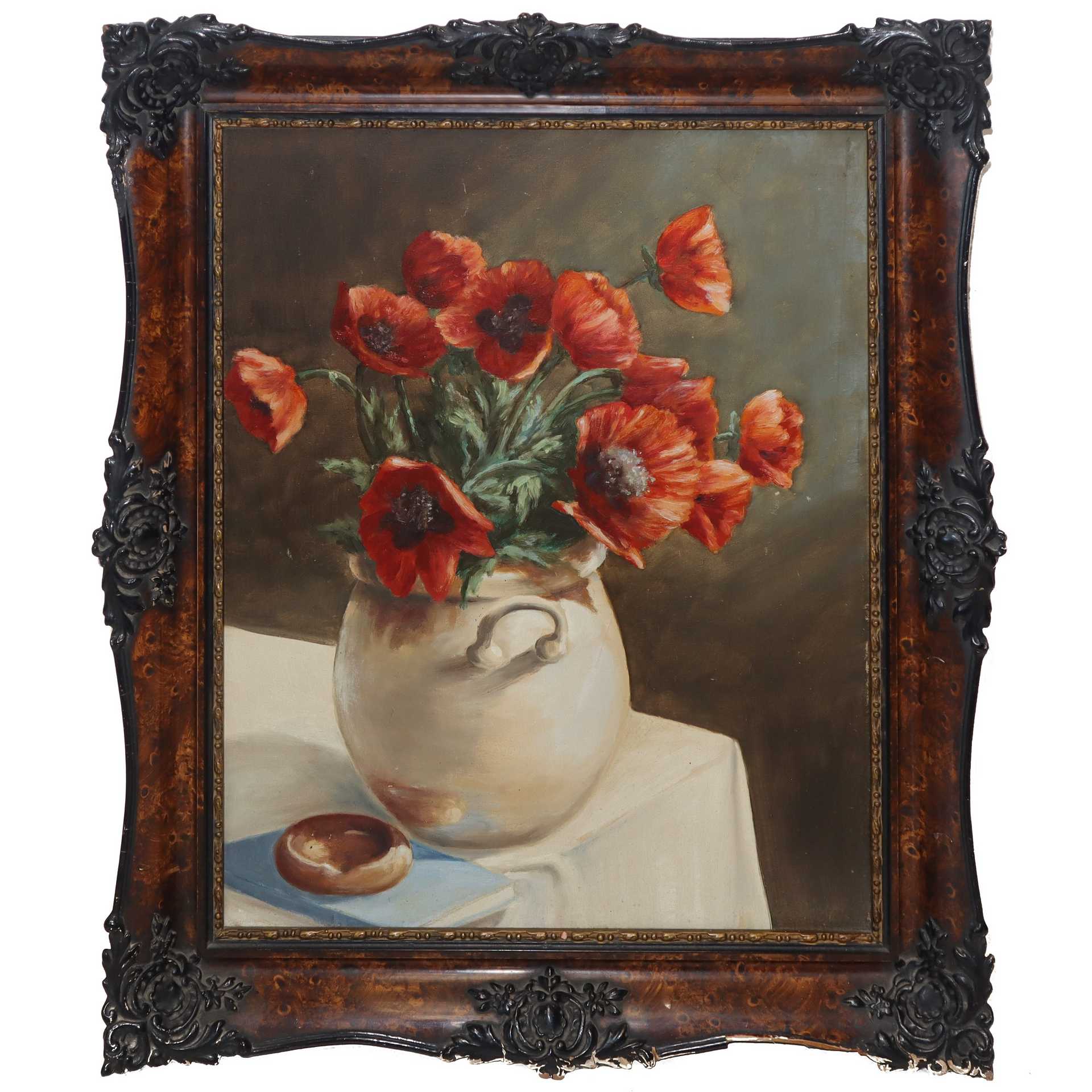 Papaveri rossi in vaso, fine 19° secolo cm 50 x 40, in cornice 62 x 52 olio su tela Firmato D. Deri.