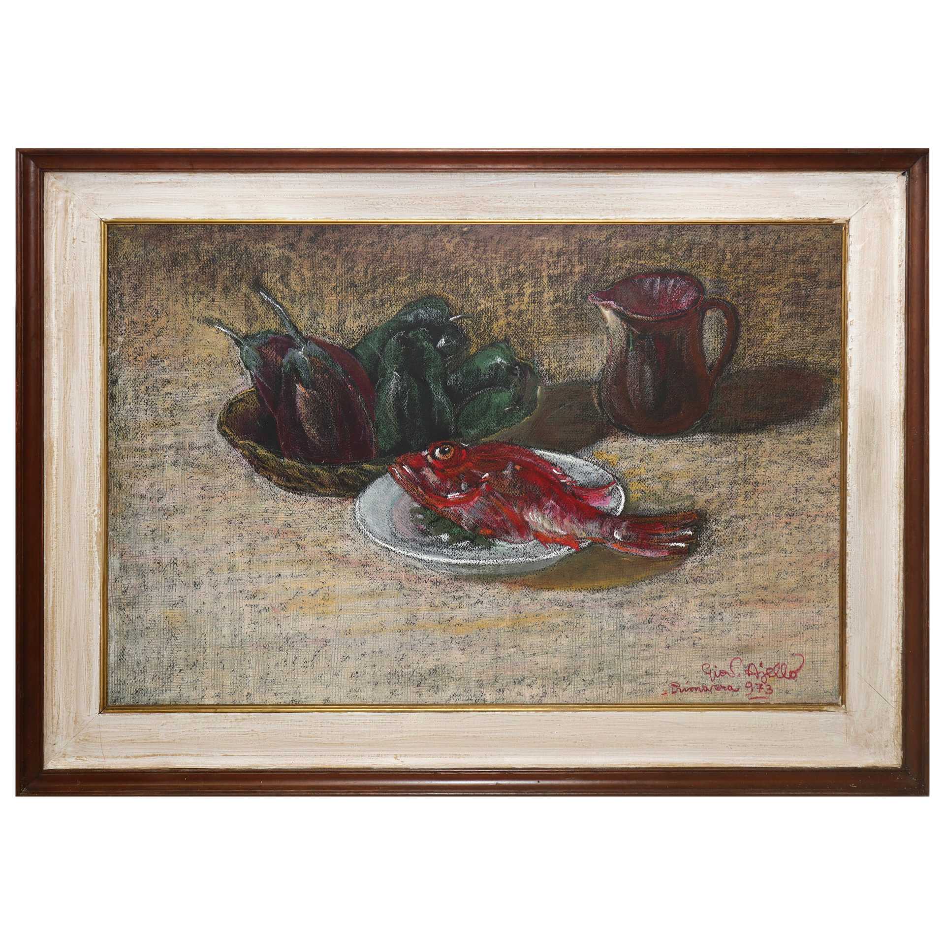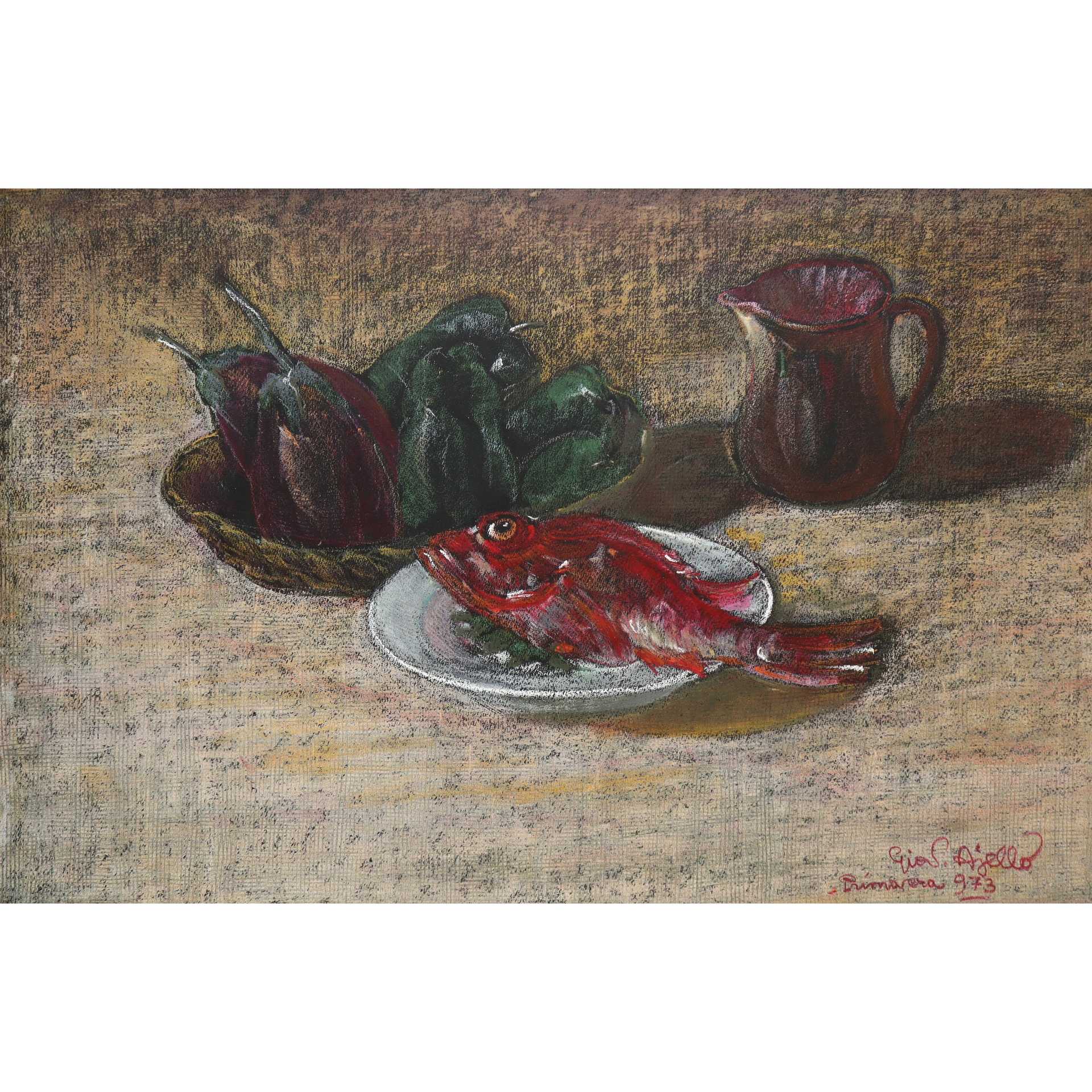 Giovanni Aiello (Susa 1937-Pontedera 2022) - Natura morta con pesci