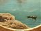 Simoncini Salvatore (Palermo seconda metà dell'800-prima metà del '900) - Paesaggio costiero con scogli e barca D cm 36, incornice cm 51 x 51 Simoncini. Entro cornice dorataSimoncini. Entro cornice dorata