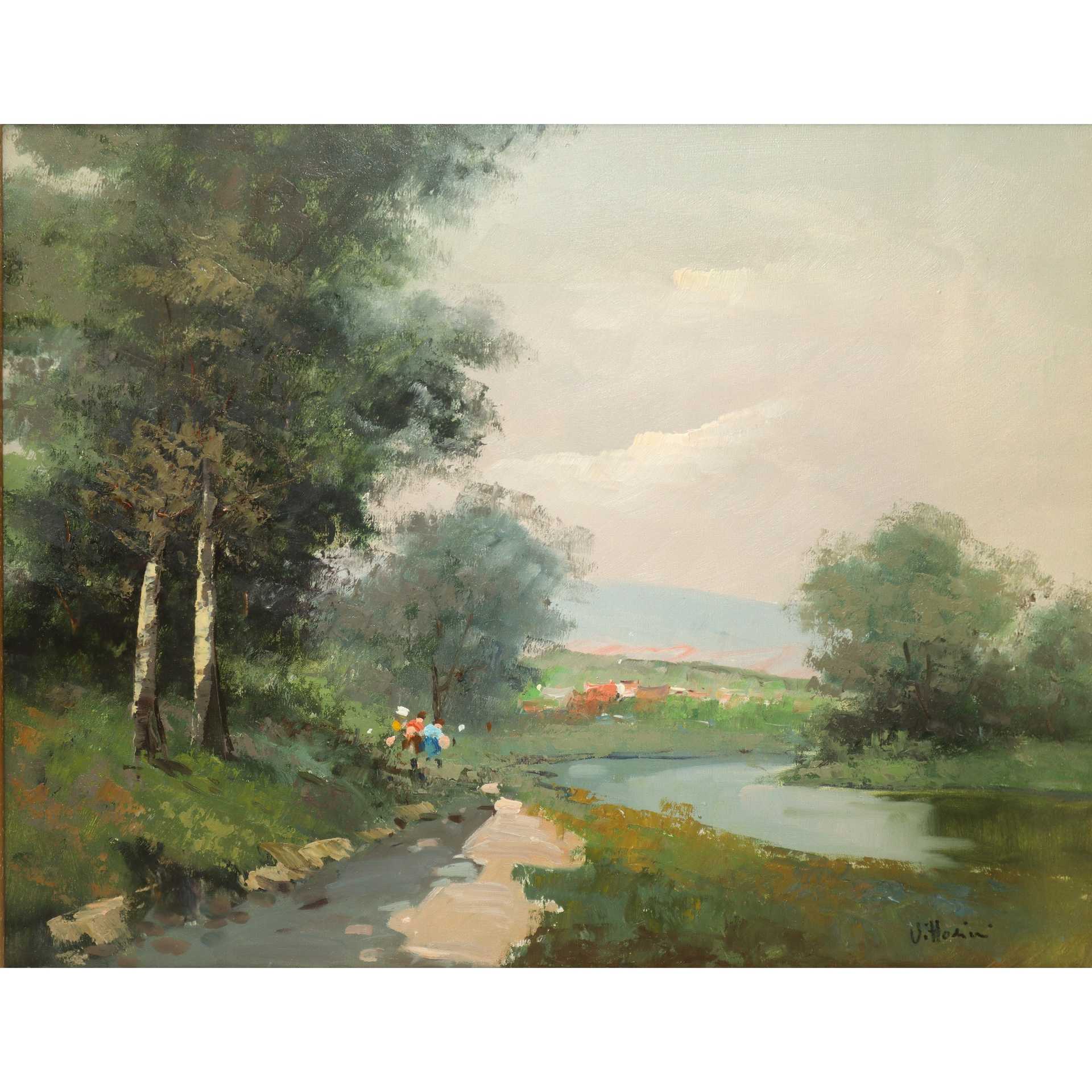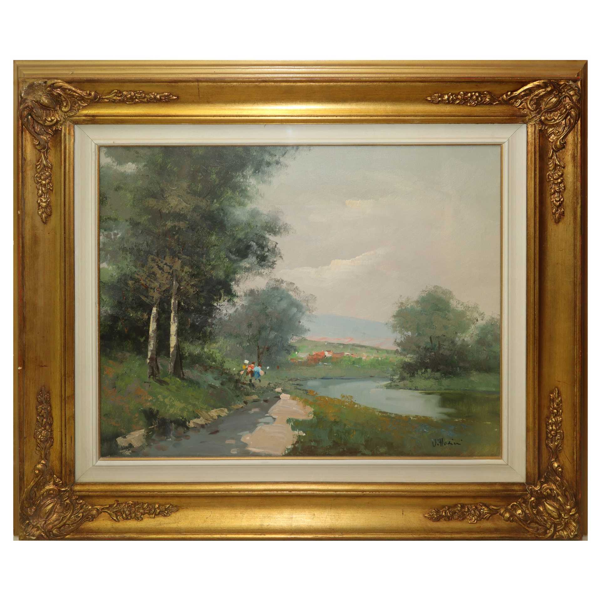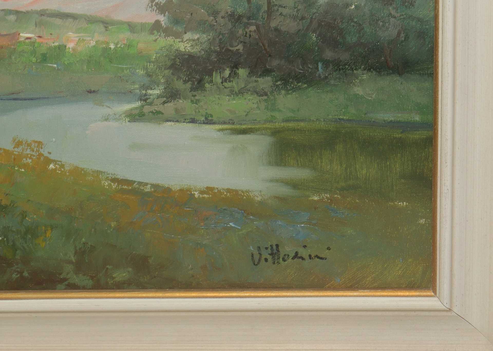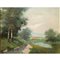 Paesaggio fluviale con alberi cm 50X 60 in cornice 76X86 Olio su tela Firmato in basso a sinistra Vittorini