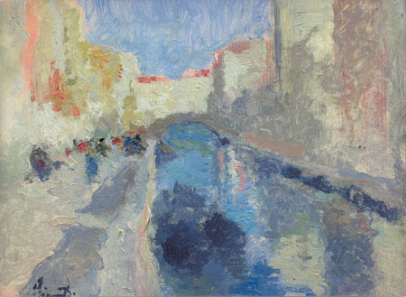 RIMOLDI PIETRO ADAMO Milano 10/09/1869Canale a Veneziaolio su cartone cm....