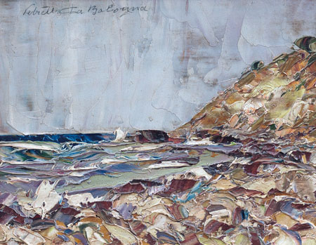 olio su tavola cm. 18x23, firma in alto a sinistra, firma dell'artista e timbro della Galleria d'Arte Carlo Alberto (TO) al retro.