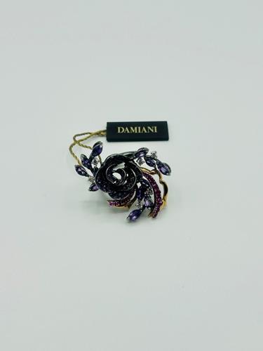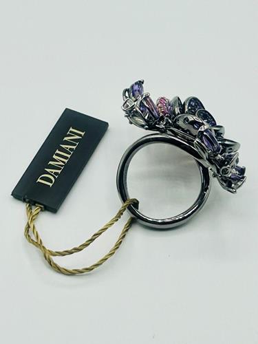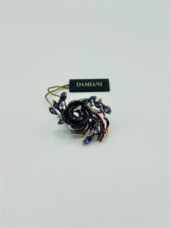 Anello in oro brunito con diamanti, zaffiri e ametista