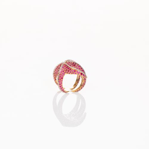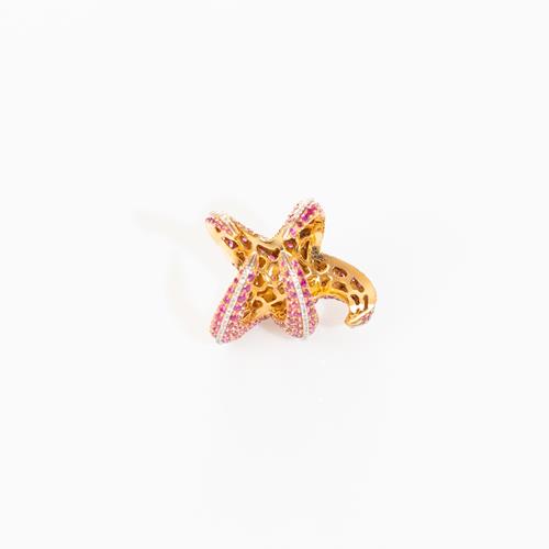Anello in oro rosa a forma di stella marina con zaffiri rosa e diamanti taglio brillante