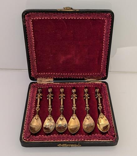 Set di 6 cucchiaini in argento con manico muliebre fine XIX secolo