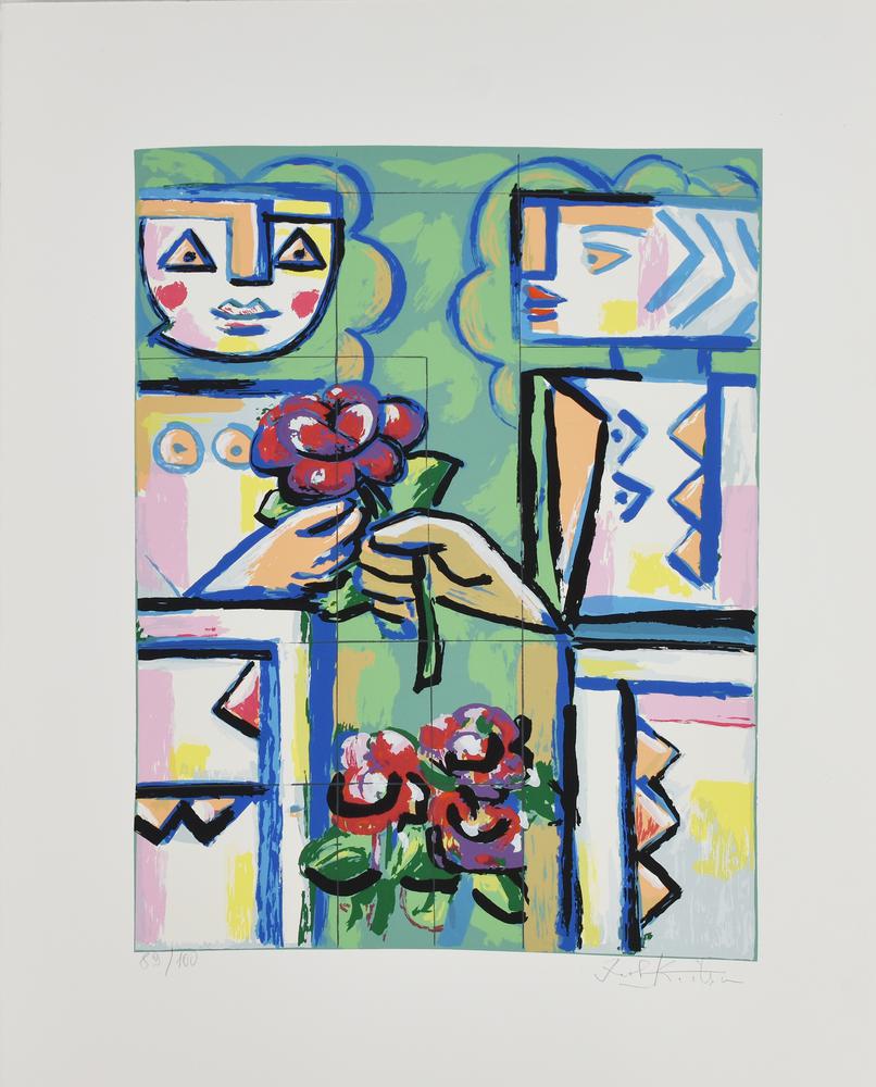 Ibrahim Kodra LE DIEDI UNA ROSA serigrafia, cm 70x50; es. 89/100 firma e...