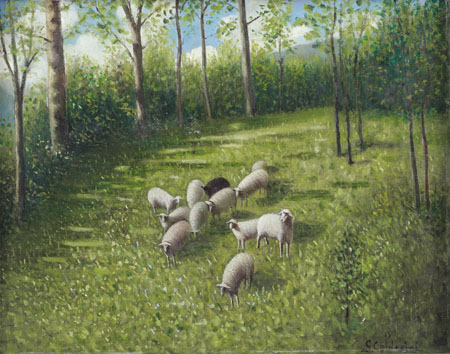 CALDERINI GIUSEPPE Camerino d'Asti (At) 1892 - 1980Gregge al pascoloolio su...