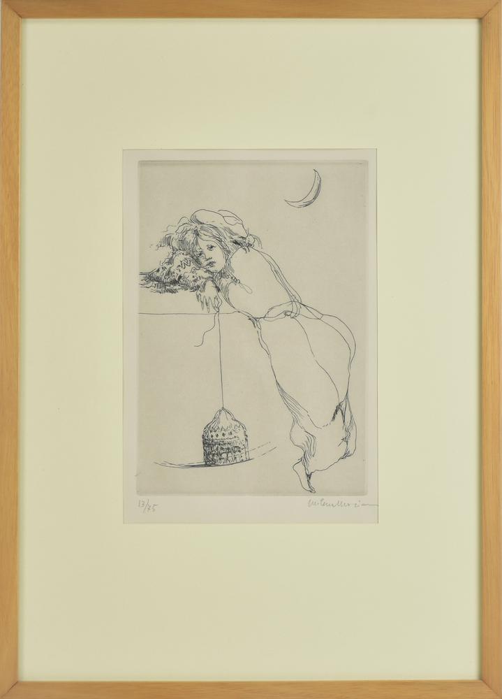 Lotto 152 | Milena Moriani GIOVANE DONNA CON PENDOLO incisione su carta, battuta cm...