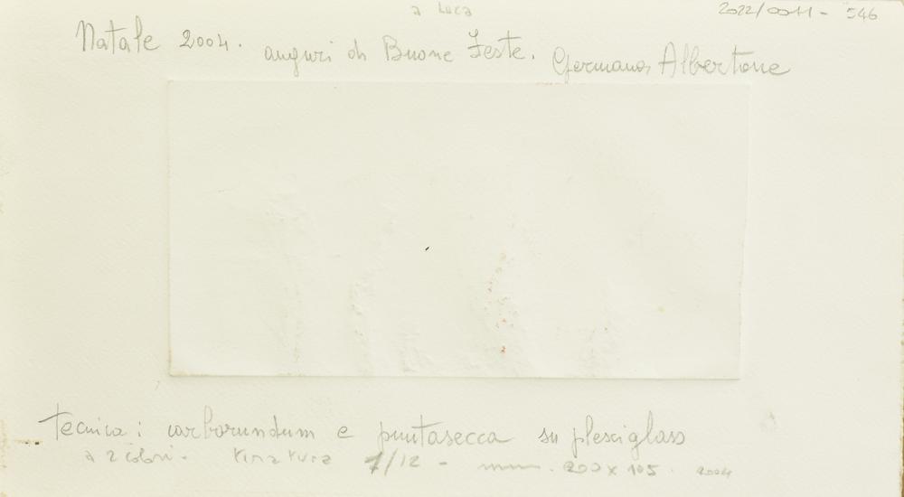 carborundum e puntasecca su plexiglass a due colori, battuta cm 10x20, su foglio cm 18x32; es. 7/12
