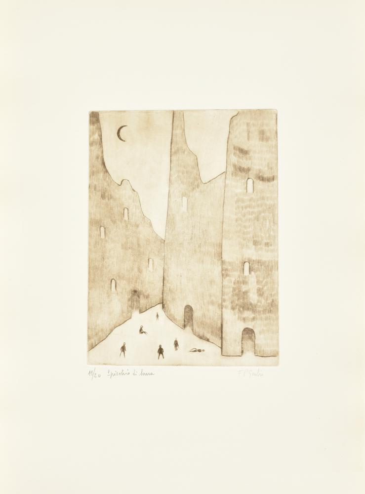 F. P. Giulio SPICCHIO DI LUNA incisione su carta, battuta cm 24x18, su foglio...
