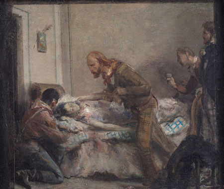 Lotto 318 | PITTORE DEL XX SECOLO Giuseppe Garibaldi al capezzale di Anitaolio su tela...