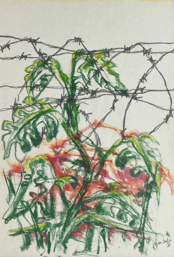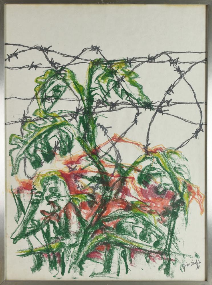 Gino Baglivo DIETRO LE FOGLIE, 1973 pastello grasso su carta, cm 70x50 firma...