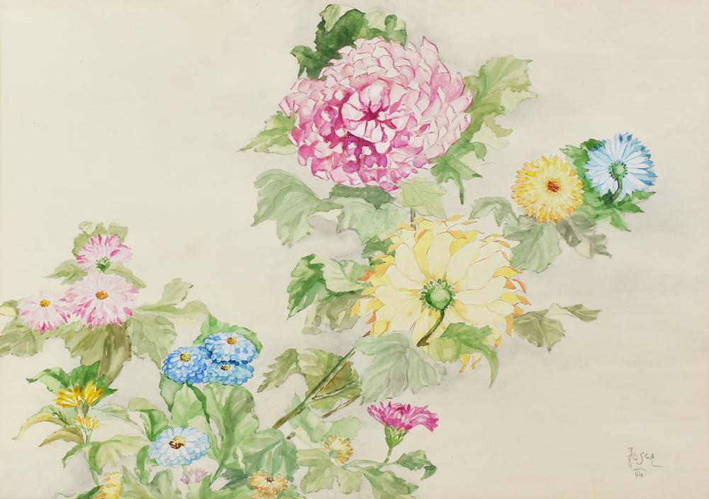 Lotto 92 | Fosca COMPOSIZIONE FLOREALE matita e acquarello su carta, cm 40x54 firma e...