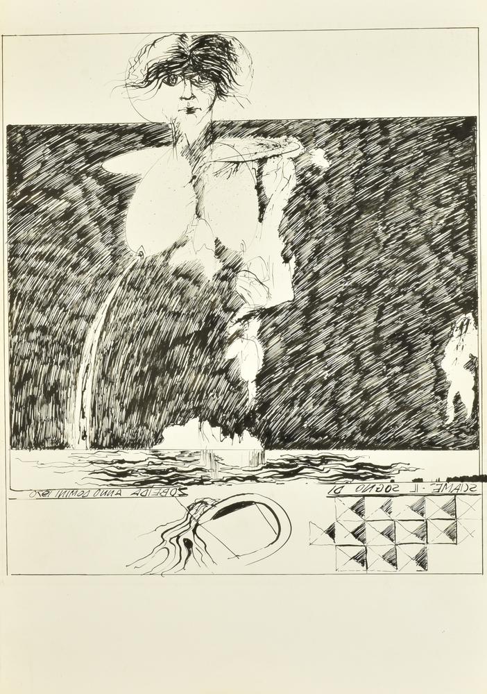 Vincenzo Sciame' IL SOGNO DI ZOBEIDA A.D. 1970 china su carta, cm 50x35 firma...